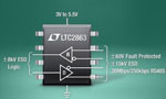 La famille LTC2862-2865 procure une très bonne protection et une grande fiabilité à une grande variété d’applications RS485/RS422, incluant le contrôle industriel, les réseaux d’instrumentation et l’électronique pour l’automobile. Une gamme de tension d’entrée en mode commun étendue ±25V et un fonctionnement entièrement sécurisé améliorent la fiabilité des transmissions de données dans les environnements à fort niveau de bruit électronique et en la présence de tensions dues aux boucles de masse. Cette gamme élargie de tension en mode commun permet aux composants LTC2862-2865 d’émettre et de recevoir dans des conditions sévères qui, autrement, pourrait causer des erreurs de données et endommager le composant. Une protection renforcée contre les ESD (décharges électrostatiques) permet à ces composants de supporter ±15kV (HBM et décharge dans l’air IEC-1000-4-2) sur les broches des émetteurs-récepteurs, sans verrouillage à l’état passant ni dommage ; toutes les autres broches sont protégées jusqu’à ±8kV HBM. Des seuils symétriques du récepteur permettent aux composants de maintenir une bonne symétrie du rapport cyclique à de faibles niveaux du signal et améliorer l’immunité au bruit du récepteur.