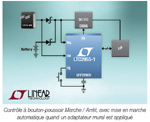 À la mise sous tension, le LTC2955 peut arrêter un système via un bouton-poussoir et optionnellement peut utiliser un interrupteur logique pour demander l’arrêt d’un système dans des applications commandées à partir de menus (arrêt « doux »), ou arrêter automatiquement un système si l’alimentation est enlevée. Aucun code n’est nécessaire pour configurer le composant. Le LTC2955 est un contrôleur, à bouton-poussoir, de forte tension, simple, cependant configurable, qui présente un ensemble commun d’options de mise en Marche / Arrêt d’alimentation.