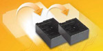 6 pôles avec arrangement des contacts 4 NO et 2 NF (4T2R) ou 5 NO et 1 NF (5T1R) ; dimensions L=39,0mm x l=28,6mm x H=14,5mm