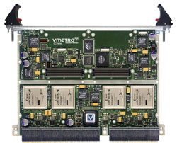 En configurant le commutateur crossbar, les connexions entre ces ressources peuvent être configurées selon les besoins de l’application. Pour les E/S de fond de panier, chaque FPGA dispose de deux ports série x4 full-duplex à plusieurs Gbits/s routés vers le fond de panier VPX, chaque port x4 permettant de transférer 1 Gbits/s. La FPE650 offre également des E/S parallèles de fond de panier, directement connectées à deux des FPGA. Une suite d’outils de développement logiciel et HDL pour FPE650 est fournie par VMETRO, comprenant des blocs IP tels que des contrôleurs mémoire ou DMA, ainsi que des exemples et des utilitaires pour la configuration et le développement de FPGA. La majorité des ressources de tous les FPGA sont disponibles pour les applications utilisateur. VMETRO annoncera sous peu une gamme de modules FMC, utilisables avec le FPE650 et d’autres produits VMETRO à base de FPGA.