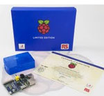 Seules 1 000 cartes Raspberry Pi Modèle B de couleur bleue ont été produites par RS. Chacune de ces cartes est estampillée d’un numéro de série. Livrée dans un coffret de présentation, elle est accompagnée d’un boitier translucide bleu et d’un certificat d’authenticité signé par Eben Upton, directeur général de la Fondation Raspberry Pi. Le boîtier translucide bleu a été conçu et offert par le fabricant concepteur One-Nine-Design.