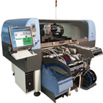 Toutes les pièces mécaniques critiques sont remplacées et de nouveaux encodeurs sont installés sur les axes X et Y pour augmenter la précision de placement. Le magasin à buses comprend à présent 40 positions et accueille des buses codées. La nouvelle tête, entièrement modifiée, est équipée d’un barillet à 8 positions avec capteurs optiques et caméras numériques haute résolution. Sur le plan logiciel, les versions les plus récentes sont installées sur un PC neuf. Même le capot de la machine, avec écran plat et panneau de commande, est totalement différent de celui d’origine.