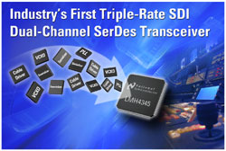 En plus du LMH4345 triple débit, la société propose également le transpondeur SerDes SDI à deux canaux LMH4045 compatible HD/SD, et le LMH4075 compatible SD seulement.