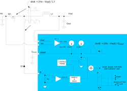 Le mode courant crête émulé offre tous les avantages intrinsèques d’un contrôleur en mode courant classique, sans le problème de susceptibilité au bruit souvent rencontré à cause du courant de recyclage inverse de diode, revenant sur le noeud de commutation, et des délais de propagation de mesure de courant, tout en offrant les très faibles temps passants nécessaires pour réguler des tensions de sortie faibles à partir de rails de tension élevée comme dans les applications PoE.