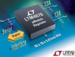 Avec une erreur en sortie, maximale de ±1%, en continu, sur la gamme de températures, une précision de lecture de l’intensité à ±2,5%, un CAN delta-sigma de 16 bits et une EEPROM intégrés, Le LTM4676 réunit les performances analogiques, les meilleures de sa catégorie, et celles d’un régulateur à découpage avec une acquisition de données mixées de précision. Le LTM4676 fonctionne sur une tension d’entrée de 4,5V à 26,5V et les convertit en deux tensions de sortie plus basses, de 0,5V à 5,4V. Deux canaux peuvent se partager le courant pour générer jusqu’à 26A (i.e. : 13A+13A si à une sortie). Jusqu’à quatre LTM4676 peuvent être associés pour un fonctionnement en multiphase avec partage d’un courant de sortie jusqu’à 100A. Au démarrage, les tensions de sortie, la fréquence et le déphasage des canaux peuvent être fixés par connexion de résistances sur des broches appropriées.