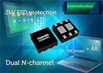 Ce transistor MOSFET canal-N assure un bon rendement et autorise des vitesses de commutation élevées, grâce à sa conception, qui réduit au maximum sa résistance à l’état passanr (RDS(ON)) et sa capacité d’entrée (CISS). Cette capacité d’entrée peut descendre à 129 pF, tandis que RDS(ON) est de seulement 67 mΩ à VGS = 4.5V. Ceci permet de faibles pertes et autorise un fonctionnement rapide, avec un temps d’établissement (ton) de 26 ns, et un temps de coupure (doff) de seulement 9 ns. La faible charge de grille de Qg = 1.8 nC (avec ID = 4A) réduit de manière sensible la dissipation AC à 3 MHz, ce qui permet l’utilisation de ce MOSFET dans des convertisseurs DC. La configuration indépendante des deux MOSFET, et le niveau élevé de protection ESD supérieur à 2 kV, permettent aussi son utilisation dans des circuits de protection de batterie.