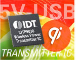 Integrated Device Technology, a annoncé le premier émetteur de puissance sans fil monopuce à la norme Qi, supportant une entrée 5V. Cette solution très intégrée permet le développement de tapis de recharge sans fil alimentés par port USB utilisant 4 fois moins de CI que les solutions concurrentes. Cet émetteur IDT est idéal pour réaliser des systèmes de recharge sans fil alimentables par port USB, tout en réduisant au maximum la complexité et l’encombrement du système.