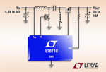 Son premier contrôleur DC/DC, synchrone, architecture multiple, inverseur, élévateur, SEPIC et à récupération d’énergie. Ce composant synchrone remplace la diode de sortie par un MOSFET canal P, de haut rendement, pour accroître le rendement, l’intensité de sortie maximum (jusqu’à 10A) et éliminer le radiateur normalement requis dans les applications de moyenne à forte puissance, ce qui rend le LT8710 largement adapté à une gamme étendue de conceptions d’alimentations de puissance.
