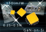 Ces nouveaux produits font appel à la technologie GaN-on-SI (Nitrure de Galium sur Silicium) et à un processus de fabrication permettant de produire ces LED directement sur un wafer (tranche de silicium) 8 pouces (environ 203 mm). Ces LED sont les plus petites du marché, dans la catégorie "LED blanches 0.25W à 0.50W[2] ", avec un boîtier de seulement 0.65 x 0.65 mm, mais elles offrent un rendement lumineux de 130 lm/W[3] , et une excellente dissipation thermique. Le courant direct peut atteindre 180 mA (maximum).