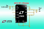 Le LT8620 intègre des commutateurs de puissance, internes, haut et bas, au rendement élevé, avec la diode élévatrice, l’oscillateur, les circuits de contrôle et de logique nécessaires, intégrés sur une seule puce. Le fonctionnement en Burst Mode, à faible ondulation, maintient un rendement élevé pour de faibles intensités de sortie tout en gardant l’ondulation en dessous de 10mVcrête‑à‑crête . Des techniques de conception spéciales et un nouveau procédé très rapide permettent un fort rendement sur une large gamme de tensions d’entrée, et l’architecture à mode courant du LT8620 assure une réponse rapide aux transitoires et une excellente stabilité de boucle. Les autres caractéristiques incluent une compensation interne, un indicateur de tension établie, un démarrage progressif, un suivi de la tension de sortie et une protection thermique.