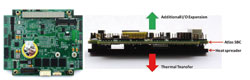 Atlas fonctionne avec les systèmes Linux, Windows Embedded Standard 7 et Windows Embedded CE. Un kit de développement logiciel est proposé avec des images amorçables et des pilotes pour permettre aux ingénieurs de démarrer immédiatement un projet de système. La carte Atlas a été conçue spécialement pour les environnements sévères, avec une gamme de température de fonctionnement de -40° à +75°C, une mémoire DDR3 soudée, une technologie de refroidissement par conduction utilisant une plaque de dissipation intégrée, une forte résistance aux chocs et vibrations. Ce dissipateur, très pratique pour installer la carte dans un châssis, réduit la température interne du châssis en diffusant la chaleur du CPU directement au châssis afin d’apporter une amélioration de la fiabilité du système et une simplification de l’installation des modules d’expansion et du câblage en réduisant les interférences avec des radiateurs.