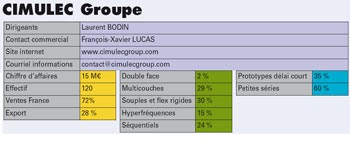 Le Groupe Cimulec est composé de 2 entités : Cimulec et CSI Sud Ouest. Ces 2 entités complémentaires permettent de proposer la réactivité et le savoir faire du " Made in France by Cimulec Groupe ". Du prototype à la série, Cimulec Groupe vous conseille en Design For Manufacturing et en Design To Cost. L’année 2014 s’annonce riche en terme d’investissements et de développements commerciaux pour le Groupe Cimulec : Des actions commerciales export sur les marchés Europe , Inde et Canada sont en cours et devraient porter leurs fruits durant cette année. Un grand compte Européen du secteur Aéronautique a qualifié Cimulec pour ses activités embarquées.