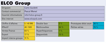Avec 4 sites de production (Angers France, Carsoli Italie, Foshan Chine, Helmond Pays-Bas), le groupe ELCO propose l’une des offres les plus complètes du marché. Le site d’Angers est conforté dans sa stratégie de fabricant prototypes et petites séries de circuits multicouches (HDI, séquentiels, μvias, ...) à fortes exigences Fiabilité, pour l’ensemble des clients du groupe. Projets pour 2014 : Elargissement de l’offre commerciale suite à l’acquisition de Ramaer (NL) Investissement sur Angers d’une nouvelle presse sous vide
