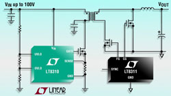 Linear Technology Corporation annonce le LT8310, un contrôleur à conversion directe, synchrone au primaire du transformateur. Le LT8310 fonctionne sur une gamme de tensions d’entrée de 6V à 100V, est conçu pour des niveaux de puissance jusqu’à 200W, et procure un signal de contrôle pour le redressement synchrone au secondaire afin d’améliorer le rendement.