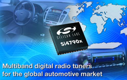 Silicon Labs (NASDAQ : SLAB), fournisseur leader de circuits intégrés (IC) à signaux mixtes, fortement analogiques et de très hautes performances, a annoncé aujourd’hui la famille de circuit tuner la plus avancée de l’industrie de l’automobile, conçue pour fournir aux systèmes d’autoradios les plus exigeants la meilleure performance de réception numérique AM/FM et HD Radio/DAB/DMB.