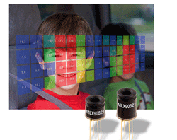 Le champ de vision amélioré permet à un seul MLX90621 placé dans l’habitacle d’un véhicule, de mesurer simultanément les profils de température du passager et du conducteur, s’il est bien positionné au milieu du tableau de bord. Cela signifie qu’il est possible de réaliser une commande de climatisation plus pertinente. Jusqu’ici, pour réaliser un système de climatisation performant, il fallait monter un capteur IR sur un système à balayage mécanique actionné par un moteur pas-à-pas, pour explorer l’ensemble de la zone cible à rafraîchir. Grâce au grand champ de vision du MLX90621, un tel balayage mécanique n’est plus nécessaire, et un dispositif fixe unique est capable d’obtenir directement une image thermique de l’ensemble de la zone. Les baisses de coût, l’accélération de mesure et la réduction de complexité globale, que permet cette matrice IR, ouvrent de nouvelles opportunités et de nouveaux marchés aux concepteurs de systèmes de climatisation.