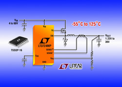 La nouvelle version de classe « MP » du LT3724, de grande fiabilité, un contrôleur DC/DC régulateur à découpage, 60 V (65 V max.) à faible courant de repos (100 µA), pour les topologies en abaisseur, élévateur, inverseur et SEPIC. Le LT3724MP fonctionne, et est testé à 100%, pour une température de jonction de – 55°C à 125°C, en comparaison avec la gamme de fonctionnement, de - 40°C à 125°C, de la version de classe « I ».