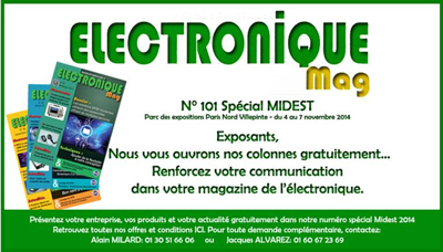 Tous les rédactionnels transmis pour ce numéro spécial Midest 2014 seront hébergés sur http://www.electronique-mag.com et relayés sur la newsletters du 27 octobre 2014.