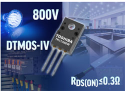 Toshiba Electronics Europe (TEE) présente le premier MOSFET de puissance 800V, basé sur sa technologie super-jonction DTMOS IV haute-tension. Le TK17A80W fait appel au processus épitaxial de pointe Toshiba, et convient idéalement aux équipements nécessitant une fiabilité et un rendement énergétique élevés, associés à un design compact. Les applications sont notamment les alimentations et les adaptateurs, les convertisseurs "fly-back" et les équipements d’éclairage à LED.