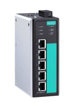 L’EDS-405A-PTP supporte également les protocoles Modbus TCP, PROFINET, et EtherNet/IP améliorant la gestion et le suivi SCADA/PLC, et se caractérise par un temps de mise en marche rapide de moins de 10 secondes, ainsi qu’un temps de récupération inférieur à 20 ms dans des réseaux comprenant 250 switches. D’autres fonctionnalités de gestion, espionnage IGMP, VLAN IEEE 802.1Q, QoS, RMON, et alarme de relai, rendent la programmation des réseaux beaucoup plus simple et plus flexible. L’EDS-405A-PTP est parfaitement adapté aux réseaux dans les environnements industriels sévères grâce à sa compacité, à sa conception sans ventilateur et à sa large plage de température de fonctionnement.