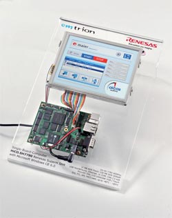 La solution Java d’aicas est désormais disponible comme plate-forme de référence sur le module processeur HiCO.SH7780 d’emtrion tournant avec le système Windows CE 6.0 R2 de Microsoft. Le module HiCO.SH7780 est disponible avec une variété de cartes mères , et peut aussi être personnalisé en fonction de besoins spécifiques d’équipements alimentés par batteries et/ou de systèmes intégrés fonctionnant en environnement industriel sévère. Le module dispose en standard de 128 Mo de DDR SDRAM et de 32 Mo de flash, extensible par interface MMC ou CF optionnelle. Les signaux d’interfaces de périphériques sont ramenés sur des connecteurs à faible espacement de broches comme l’interface de module CPU « HiCO.nect » d’emtrion. Le support de système d’exploitation inclut Windows CE 6.0, Linux 2.6 et QNX Software Systems.