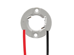 Le boîtier robuste contribue à assurer la stabilité à long terme du montage mécanique, même à des températures ambiantes élevées. La patte de pré-maintien intégrée garantit le positionnement de la matrice de pastilles LED avant le montage de l’ensemble sur un dissipateur thermique en vue de l’assemblage final, ce qui réduit d’autant le temps d’installation. Les extrémités de fil dénudées peuvent être facilement raccordées en fonction des préférences du client.