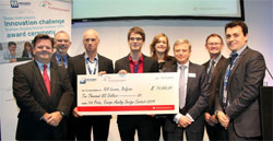 Le premier prix du Challenge de l’Innovation 2014 est attribué à Stijn Wielandt et Steven De Launsnay de l’Université de Louvain en Belgique, pour la « Tlagnose Watch » qui mesure la température, le taux de bilirubine et la saturation en oxygène du sang des nouveau-nés. Portée par le personnel médical, la montre Tlagnose remplace de multiples dispositifs portables qui mesurent chacun une fonction différente, et sont virtuellement impossibles à stériliser et facilement égarés en environnement hospitalier. La montre Tlagnose fonctionne sans fil et se charge de même, et démarre les mesures par simple contact avec le bébé. Les résultats sont transmis en 1,25 s à un écran et à un ordinateur central. Le dispositif miniature comporte sept circuits imprimés rassemblant dix-sept puces de TI. Le deuxième prix revient à une équipe de l’Ecole Polytechnique de Wroclaw en Pologne, pour son pilote de diode laser 445 nm de 2 W, pouvant par exemple étendre les capacités des imprimantes 3D à ciseler sur bois ou plexiglas.