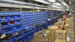 Dans l’entrepôt de préparation des commandes, les articles sont regroupés en diverses stations de prélèvement