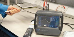 Cet équipement dispose d’un écran 7 pouces convivial qui peut être activé de manière tactile ou grâce à des touches de fonction programmées. Sa conception compacte intègre la collecte des données ainsi qu’une capacité de stockage des données pour des analyses et évaluation a posteriori. Les données en temps réels sont affichées sous forme de graphiques et de données numériques et peuvent être transférer sur un disque dur externe ou un autre périphérique via une liaison USB.
