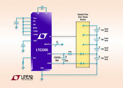 Sont inclus dans la puce les circuits de séquençage, de contrôle de FET N externes, de forte tension, de gestion de la tension et de protection. Le LTC3305 est conçu pour fonctionner en autonome et ne nécessite pas de microprocesseur ou autre circuit de contrôle. Avec le LTC3305, un élément de batterie peut être remplacé et rapidement équilibré avec les éléments restants.