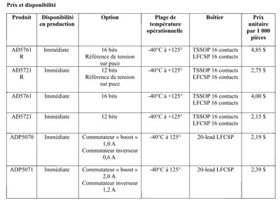 Par ailleurs, Analog Devices annonce deux régulateurs continu-continu 2 voies qui alimentent le nouveau convertisseur numérique/analogique par l’intermédiaire de deux rails positif et négatif régulés séparément pour les applications où la consommation d’énergie est un critère décisif.