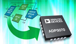 Pour télécharger la fiche technique des régulateurs continu-continu à deux puces ADP5070 et ADP5071, afficher la page des produits et commander des échantillons : analog.com/ADP5070 et analog.com/ADP5071