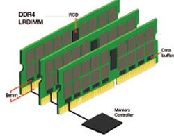 Pour comprendre comment DDR4 permet cette percée en technologie LRDIMM, on peut mettre en avant certaines différences fondamentales par rapport à DDR3. Les LRDIMM DDR4 et DDR3 réduisent toutes les deux le nombre de "charges" de données, pour améliorer l’intégrité signal sur le bus de données du module mémoire, en passant d’un maximum de 4 charges, à 1 seule ; cependant, la DDR4 introduit certaines fonctionnalités supplémentaires, qui réduisent la latence globale et améliorent l’intégrité des signaux, ce qui permet d’atteindre des vitesses comparables à la RDIMM DDR4. Ainsi, la LRDIMM DDR4 produit une bande passante égale, voire supérieure, à celle de la RDIMM DDR4, à toutes les vitesses et pour toutes les capacités de stockage. Conception LRDIMM : Comparaison entre tampons mémoire centralisés et tampons mémoire distribués