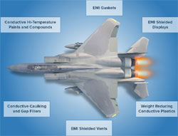 La sécurité étant la priorité numéro un des constructeurs aéronautiques et de leurs clients, de nombreuse applications existent pour les produits Chomerics dans ce secteur, notamment des peintures et composés conducteurs pour la protection contre la foudre, des produits ultra-légers pour le blindage de câbles, des joints conducteurs assurant à la fois blindage, mise à la terre et étanchéité environnementale, et des fenêtres optiques assurant un blindage efficace tout en minimisant l’impact de la lumière sur les systèmes d’info-divertissement en cabine, ou sur les affichages de cockpit.