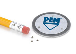 En acier inoxydable de série 400, le micro-pion PEM T4 s’installe facilement en préparant des trous de dimensions appropriés dans la tôle à fixer et le châssis. Après avoir inséré la fixation dans ces trous, une force d’installation est appliquée afin de compléter le montage. La tête de la fixation maintient alors le panneau supérieur (d’épaisseur minimale 0,2mm) fermement et définitivement. Le châssis peut avoir une dureté maximale de 88 HRB et une épaisseur minimale de 0.89 mm.