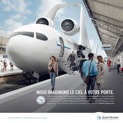 L’image inédite proposée par Safran met en scène une idée de notre futur quotidien en montrant un avion sur un quai de métro. Le visuel et son texte sont fondés sur un imaginaire évoquant les voyages de demain : « Nous imaginons le ciel à votre porte ». Cette campagne est destinée à évoquer l’importance des enjeux d’innovation sur lesquels le Groupe fait aujourd’hui de la prospective. Le visuel est réalisé dans un mélange de photographies retravaillées en 3D pour obtenir un rendu à la fois réaliste et futuriste.