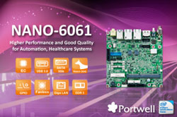 Styrel et Portwell, Inc. annoncent le lancement de la carte Nano-6061. Cette carte au format Nano-ITX (120mm x 120mm) pour les systèmes embarqués, est basée sur la famille de CPU Intel® Celeron® et Pentium® N3000 (4W 10W) communément appelée Braswell. La carte NANO-6061 est une single board computer (SBC) embarquée alliant faible consommation et hautes performances. Cette carte mère au format Nano-ITX, se destine aux applications 24/7 à haute disponibilité et répond à tous les prérequis industriels telles qu’une pérennité de long terme de 7 ans. La carte NANO-6061 est la dernière innovation de Portwell, fruit de nombreuses années d’expériences en matière de conception et de production de cartes industrielles de qualité.